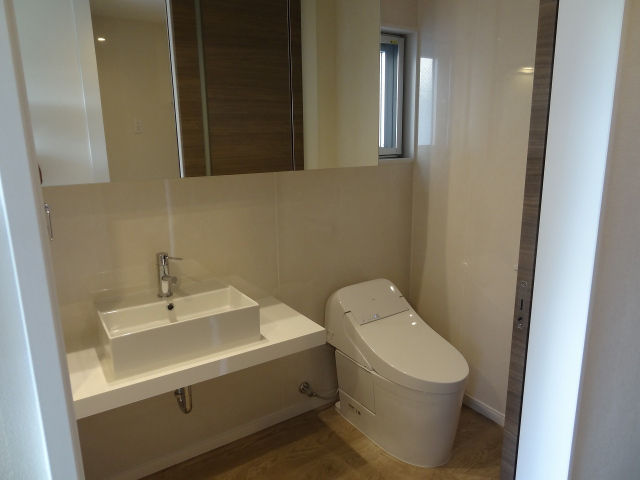 新築、バストイレ別、室内洗濯機置場、エアコン、収納、洋室、バルコニー、IH調理器付き、オートロック、洗面化粧台、玄関チャイム、ウォシュレット、駐車場、駐輪場、角部屋、都市ガス、普通契約 |